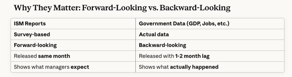 The graphic below shows how the ISM data is viewed by investors compared to government data:
