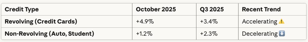 Total Consumer Credit Growth: 2.2% annualized (October 2025)