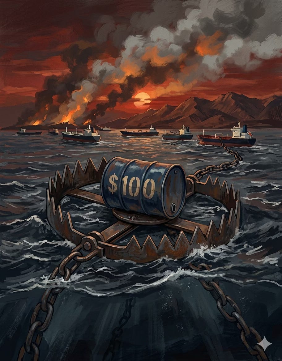 The CPI picture isn’t any friendlier. With oil surging past $100 a barrel, the energy component of CPI is about to get a lot worse. Economists have modeled what sustained oil prices do to the consumer price index: at $100 average for 2026, CPI inflation could jump an additional 1.2 percentage points to roughly 4.0%. At $120, we’re looking at nearly 5%. Those aren’t abstract numbers — they show up in grocery bills, gas station receipts, and mortgage payments.